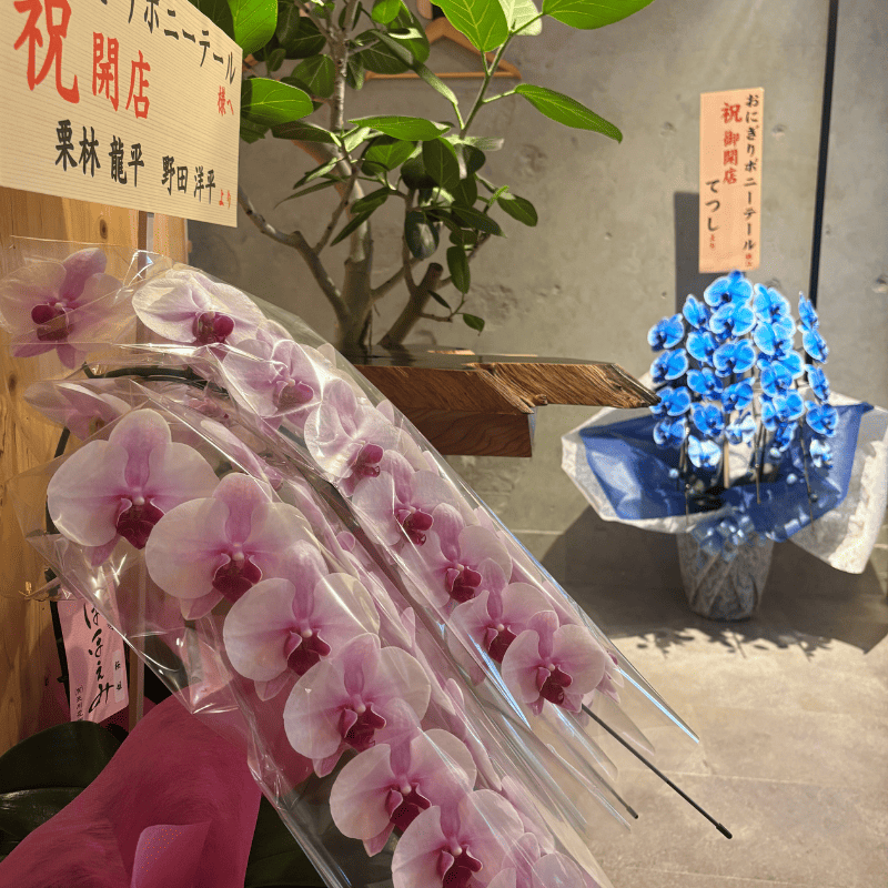 関係者の皆様にも大変支えられました。スタンドのお花や、胡蝶蘭に、室内用のお祝い、様々な嬉しいお祝い、本当にいつもありがとうございます。これはこういったお祝いごとを頂いたことに限らず、今までこの道を歩んできた、続けてきた、皆様との繋がりが感じられて幸せです。これからもおにぎりの追求に、各店舗の進化お見せしていきますので末長く宜しくお願い致します。
